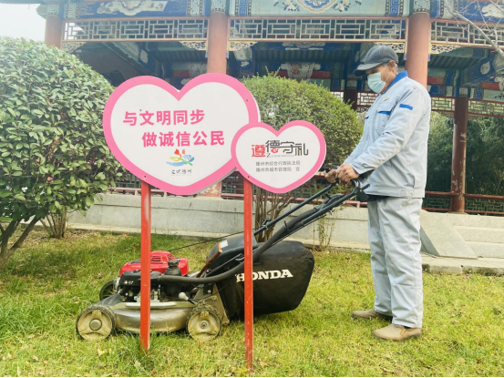 为了维护九州清晏市民广场绿化的整洁美观,给各位业主提供舒适的居住和游玩环境,近日,新发物业开展了机械除草。